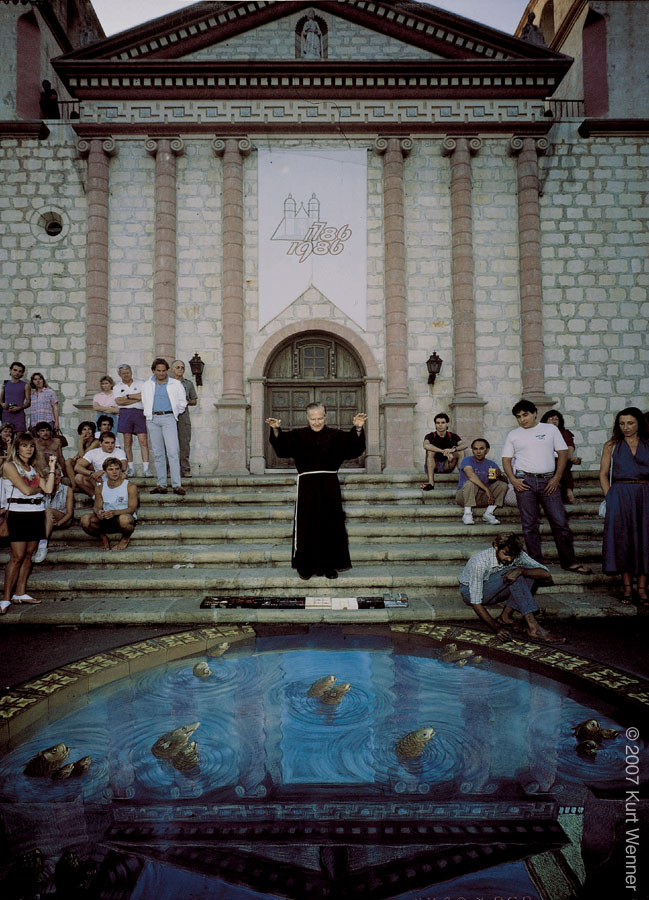 ストリートペインターKurt Wenner氏による立体ペイントアート。あまりにもリアルでまるで実際にそこに存在するかのよう。誰もが記念写真を撮影したくなる気持ちもわかります。実物を生で見てみたいものです。